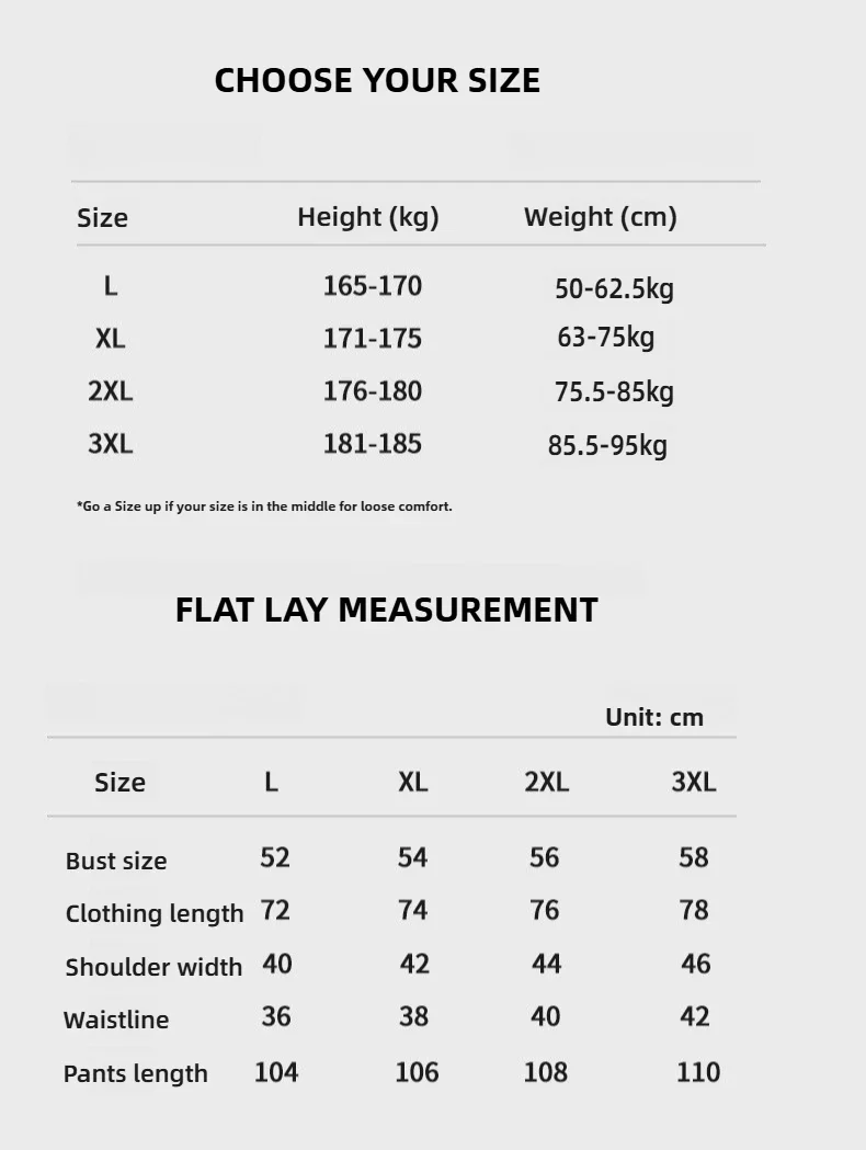 L (100~ 62.5 kg), XL (126~ 75 kg), 2XL (151~ 85 kg), 3XL (171~ 95 kg)